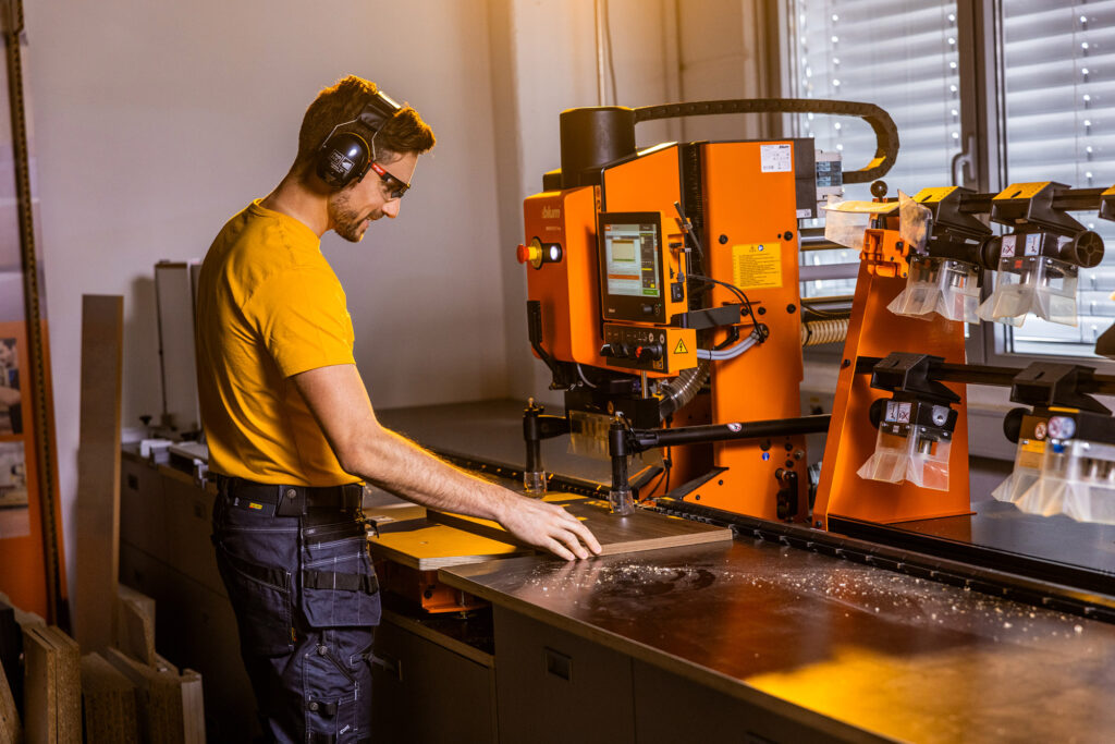 Za izdelavo večjih količin korpusov z integriranim sistemom AVENTOS HKi so v podjetju Blum razvili poseben stroj za rezkanje, MINIMILL. Tako lahko hitro in natančno izrezkate debeline stranskih stranic od 16 do 25 mm.