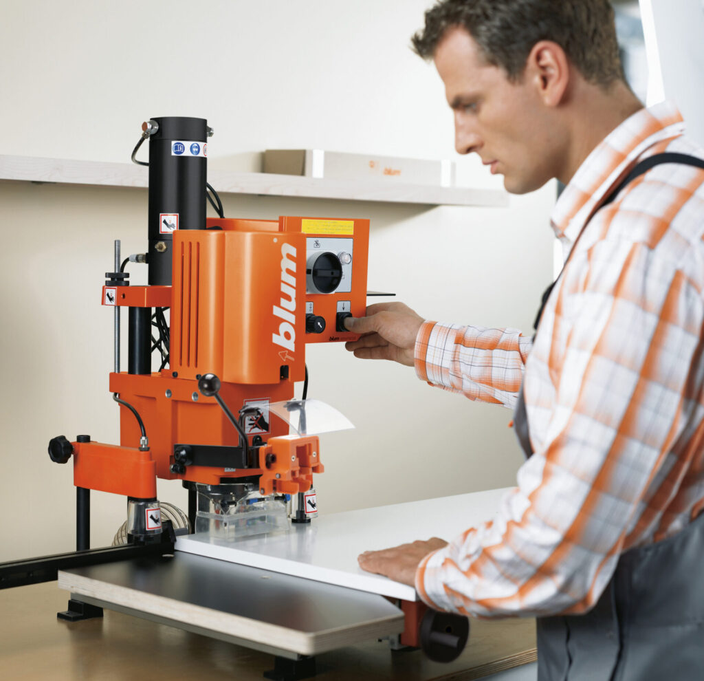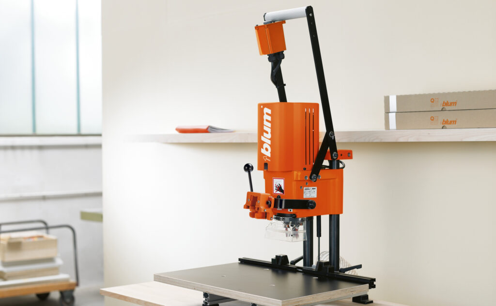 Z MINIPRESS M podjetje Blum ponuja kompaktni pripomoček za lažje delo pri vrtanju in vstavljanju okovij. MINIPRESS M pri ročni obdelavi naših izdelkov z gotovostjo pomaga pri delu v delavnici ali na kraju pred strankami.